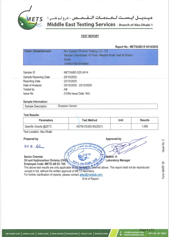 (e.g., Heterometrus swammerdami, Heterometrus longimanus) is primarily extracted using the electrical stimulation method in a controlled laboratory setting. This technique is preferred because it yields higher quantities of purer venom without causing significant trauma to the animal, allowing for multiple extractions over time.
